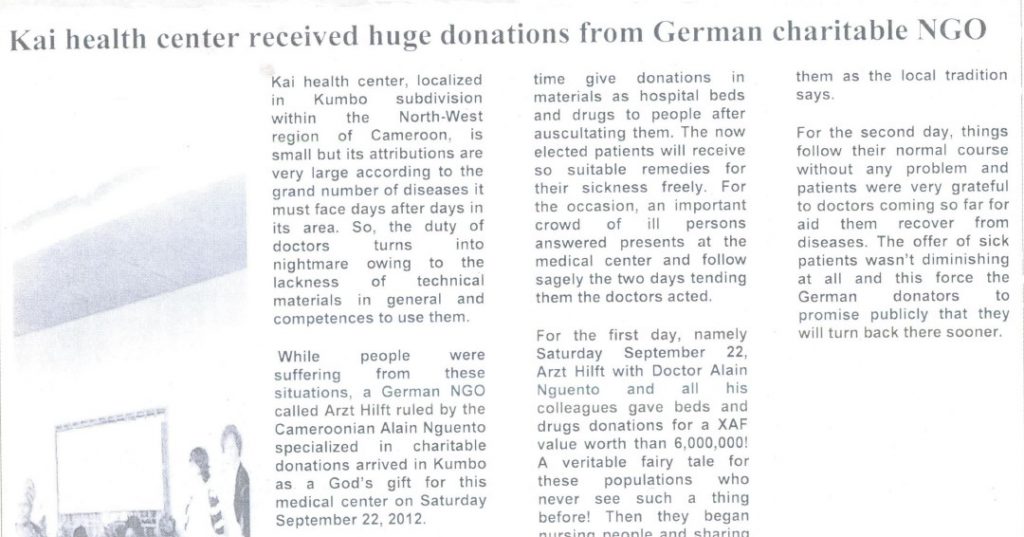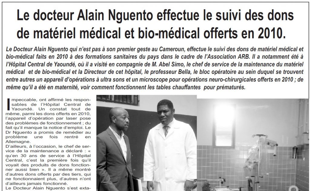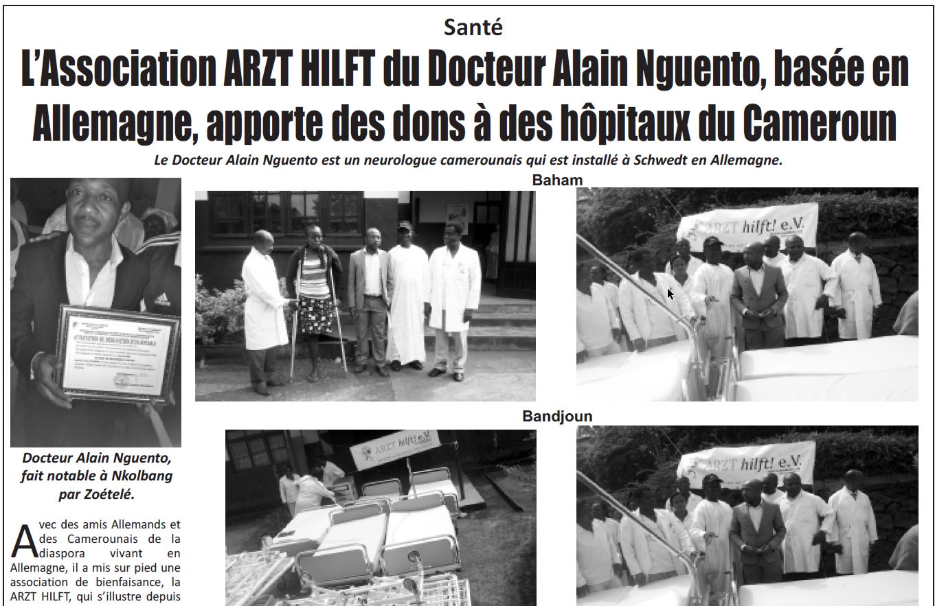 L’association ARZt HilFt du docteur Alain Nguento, basée en allemagne, apporte des dons à des hôpitaux du Cameroun
