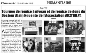 Tournée de remise à niveau et de remise de dons du Docteur Alain Nguento de l'Association ARZTHILFT.